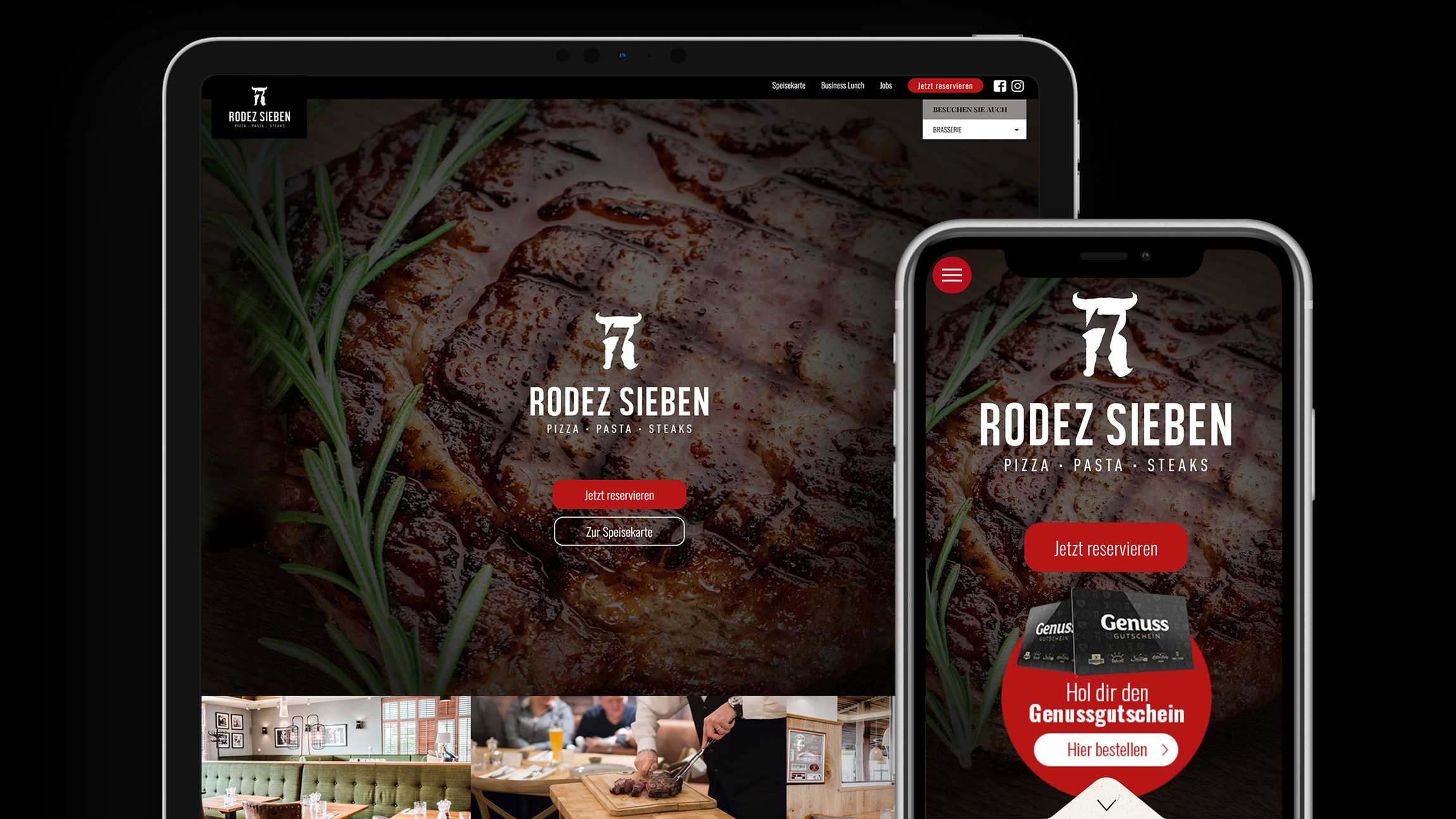Mit einem markanten Logo und einem durchdachten Designkonzept verpassten wir dem Restaurant „Rodez Sieben“ einen einzigartigen Charakter. Unser Ansatz mit dem Claim „Sexy Steaks“ unterstreicht die kulinarische Verführung.